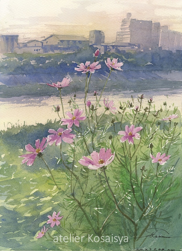 40黄昏のコスモス